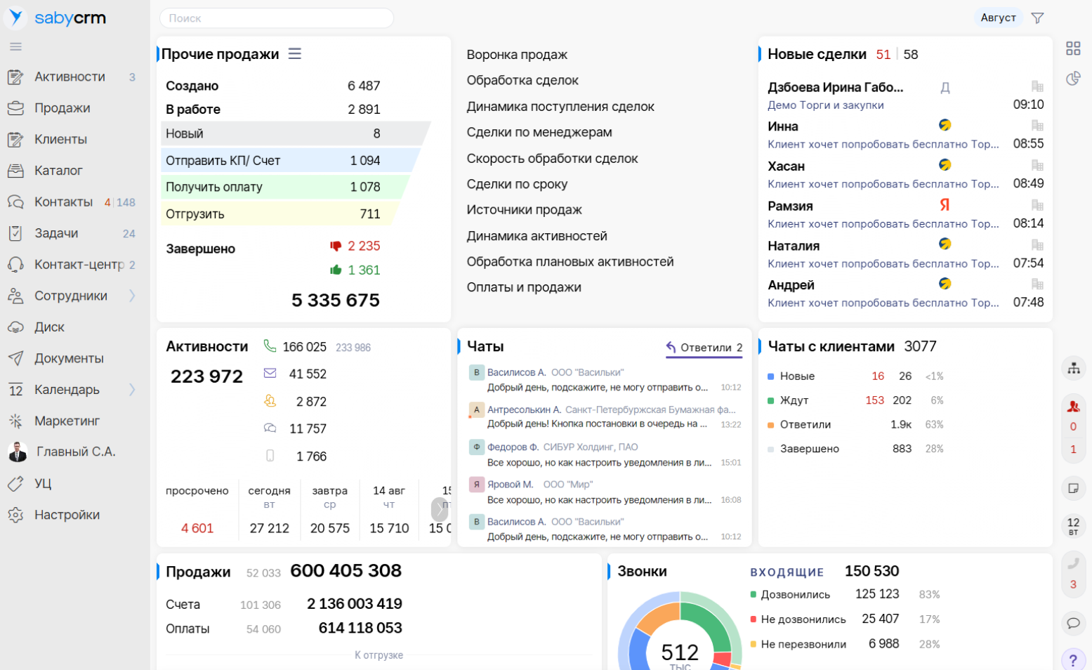 Saby CRM— комплексное решение для автоматизации отдела продаж.