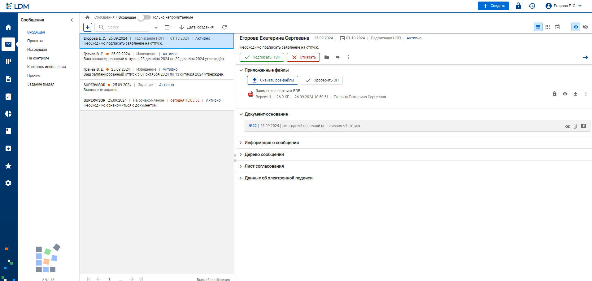 Согласование и подписание заявлений на отпуск, командировку и других кадровых документов по преднастроенным маршрутам с возможностью отслеживания статуса документа;