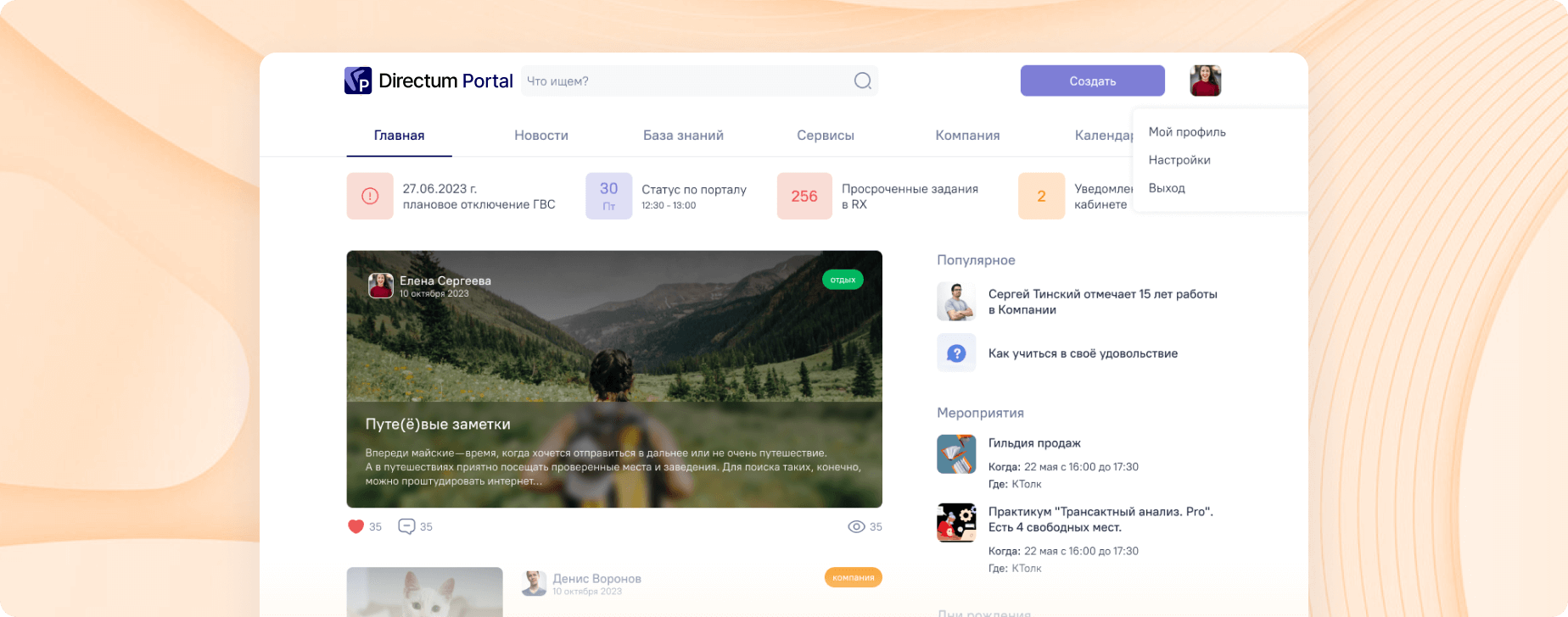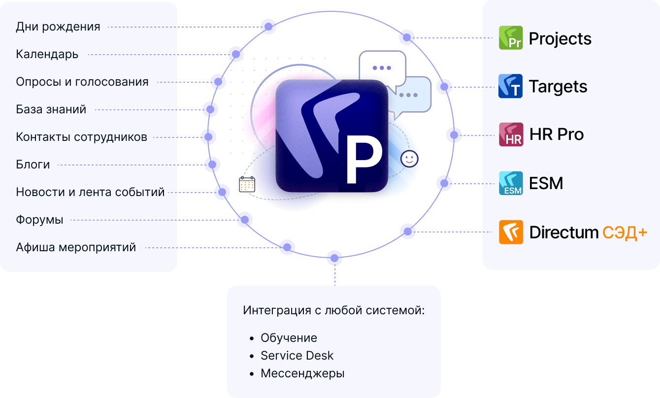 Корпоративный портал — решение в экосистеме Directum, с помощью которого можно создать единое цифровое пространство компании и управлять внутренними коммуникациями. Сотрудники пользуются порталом в привычном формате социальной сети, что повышает их вовлеченность. Мощная платформа со встроенными no-code-инструментами, на которой создан портал, дает возможность гибко адаптировать интерфейс под потребности организации. Корпоративный портал — альтернатива зарубежным решениям, он на 100% удовлетворяет требованиям импортонезависимости. Портальное решение бесшовно работает с другими программными продуктами экосистемы Directum.