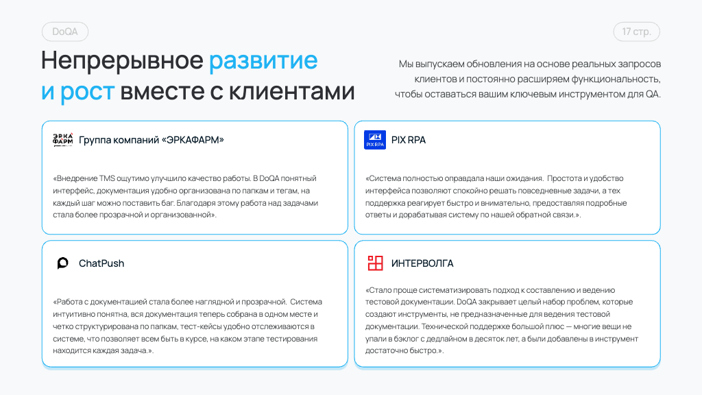 С DoQA ваша команда получает: