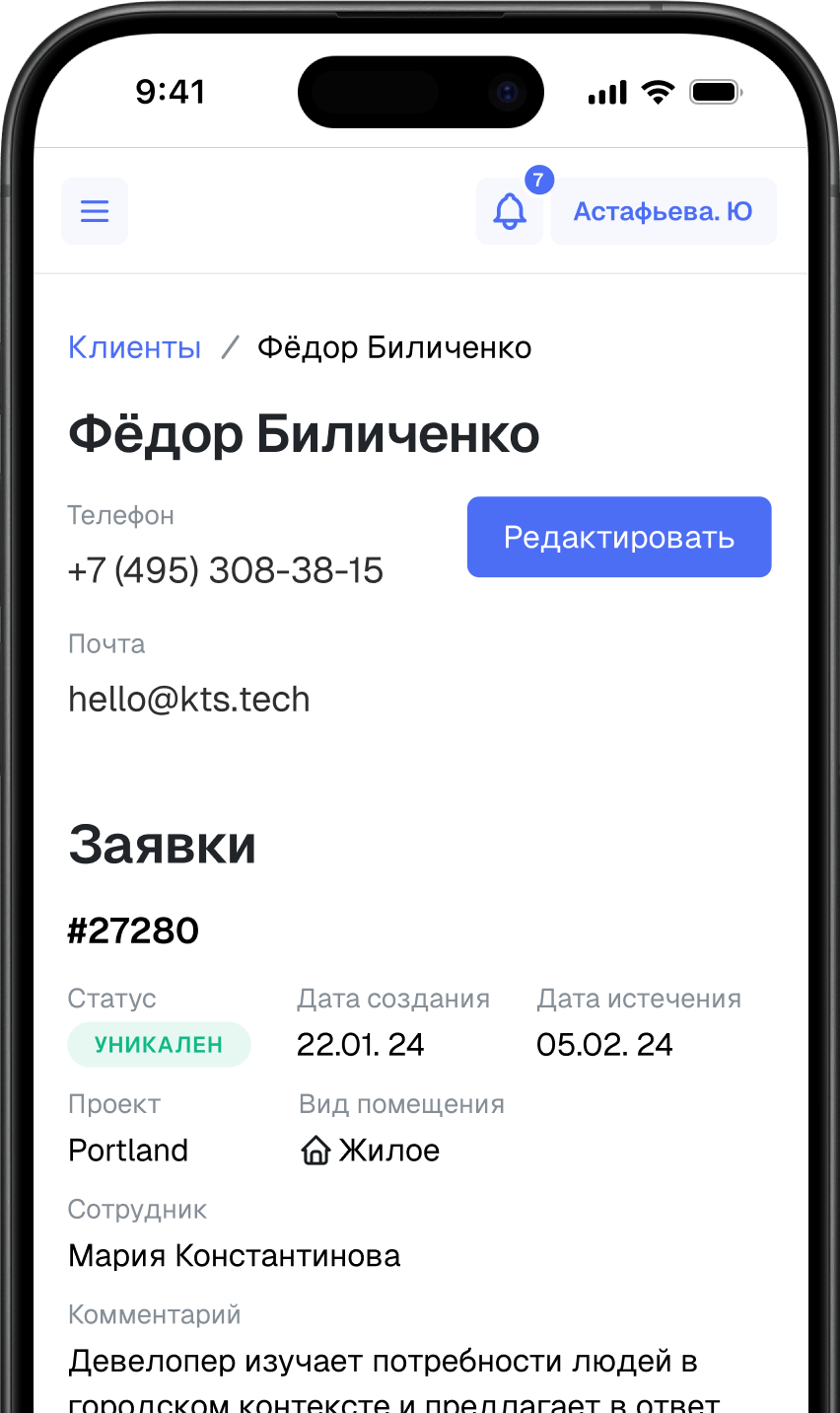 — Рост конверсий в продажу: реестр заявок и клиентов, встроенная проверка уникальности, фиксация клиентов с несформированным спросом, управление встречами, push-уведомлений об изменении статуса заявки или окончании срока фиксации.