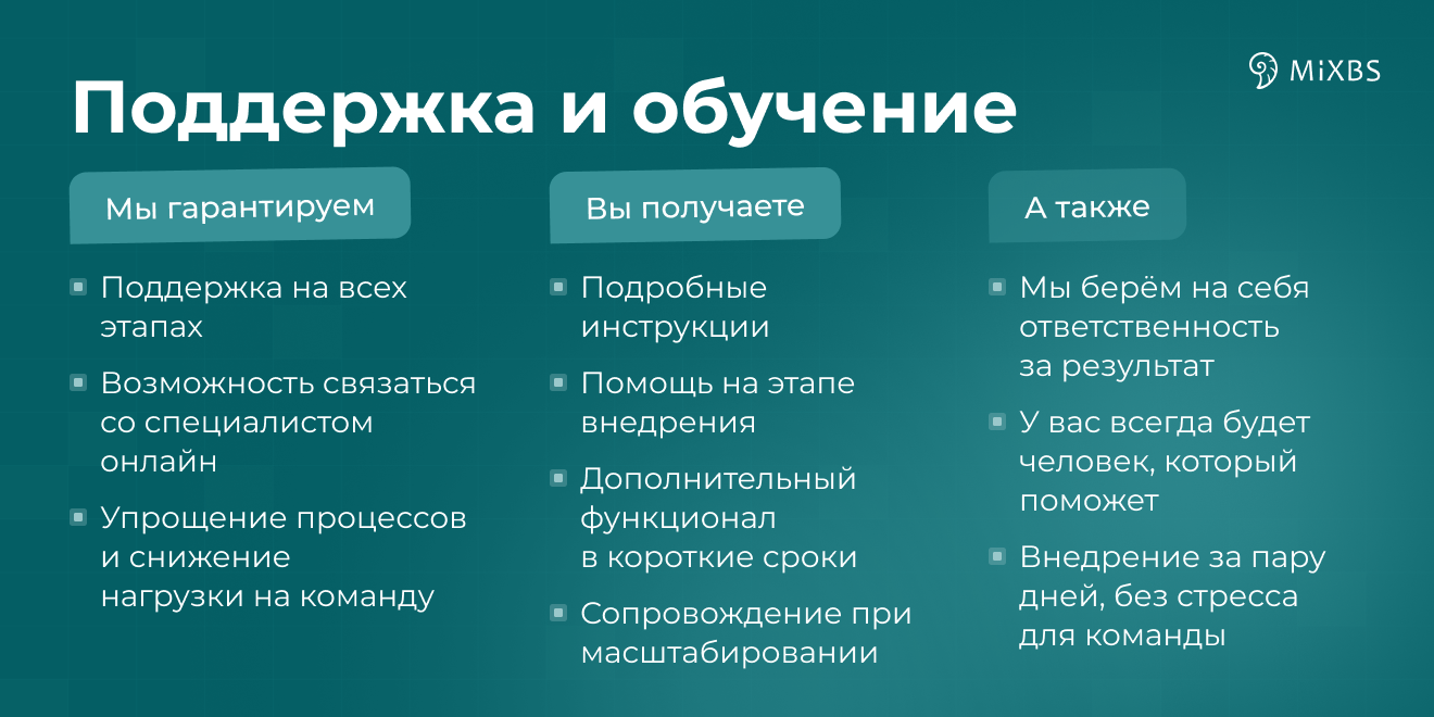 Программное обеспечение включает средства автоматизации процессов обслуживания: отправку уведомлений, выполнение действий по заданным правилам, взаимодействие с внешними сервисами и выполнение интеграционных операций.