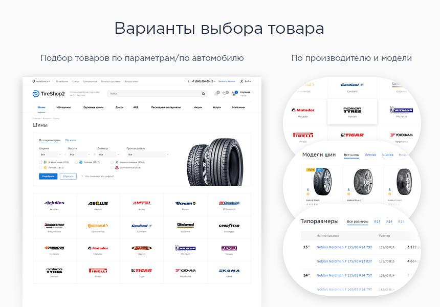 Аспро: Шины и диски 2.0 — готовый интернет-магазин, созданный специально для продажи шин, дисков, аккумуляторов и других автотоваров. Решение учитывает специфику автомобильной тематики и помогает быстро запустить полноценный онлайн-магазин с удобным каталогом и быстрым подбором продукции.