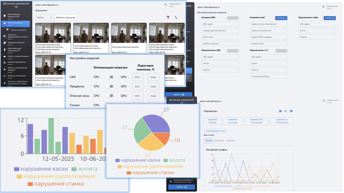 Система анализа эффективности труда и контроля рабочих процессов, построенная на базе алгоритмов компьютерного зрения, позволяет решать целый класс задач используя только IP-камеры. Среди основных функциональных возможностей системы: