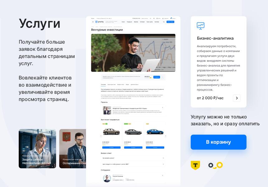 Запускайте стильный, гибкий и удобный корпоративный сайт, который усиливает имидж компании и помогает получать больше обращений.